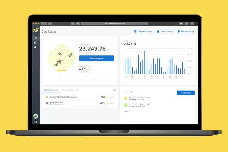 Honeygain offers a referral program that allows users to boost their earnings by inviting friends and acquaintances to join the platform.
